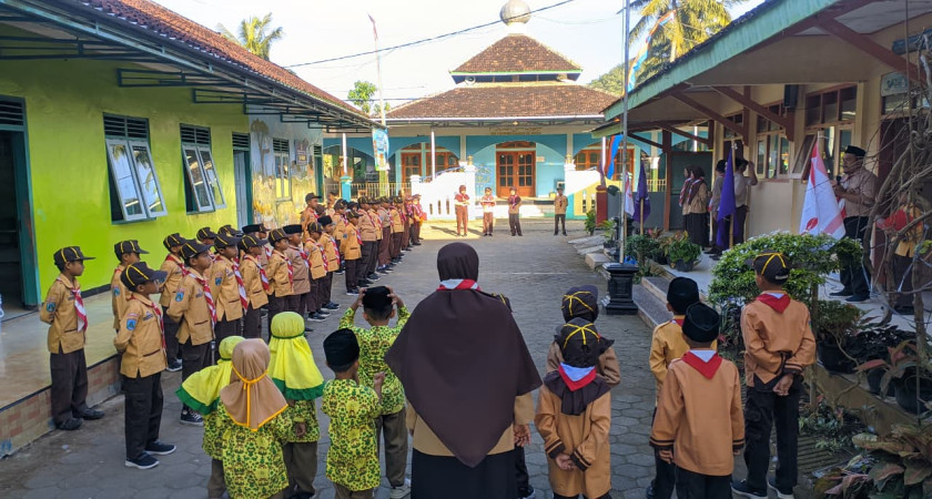 Upacara ditutup dengan doa bersama dan yel-yel pramuka yang menggema di halaman madrasah, menciptakan suasana penuh semangat dan kebersamaan.